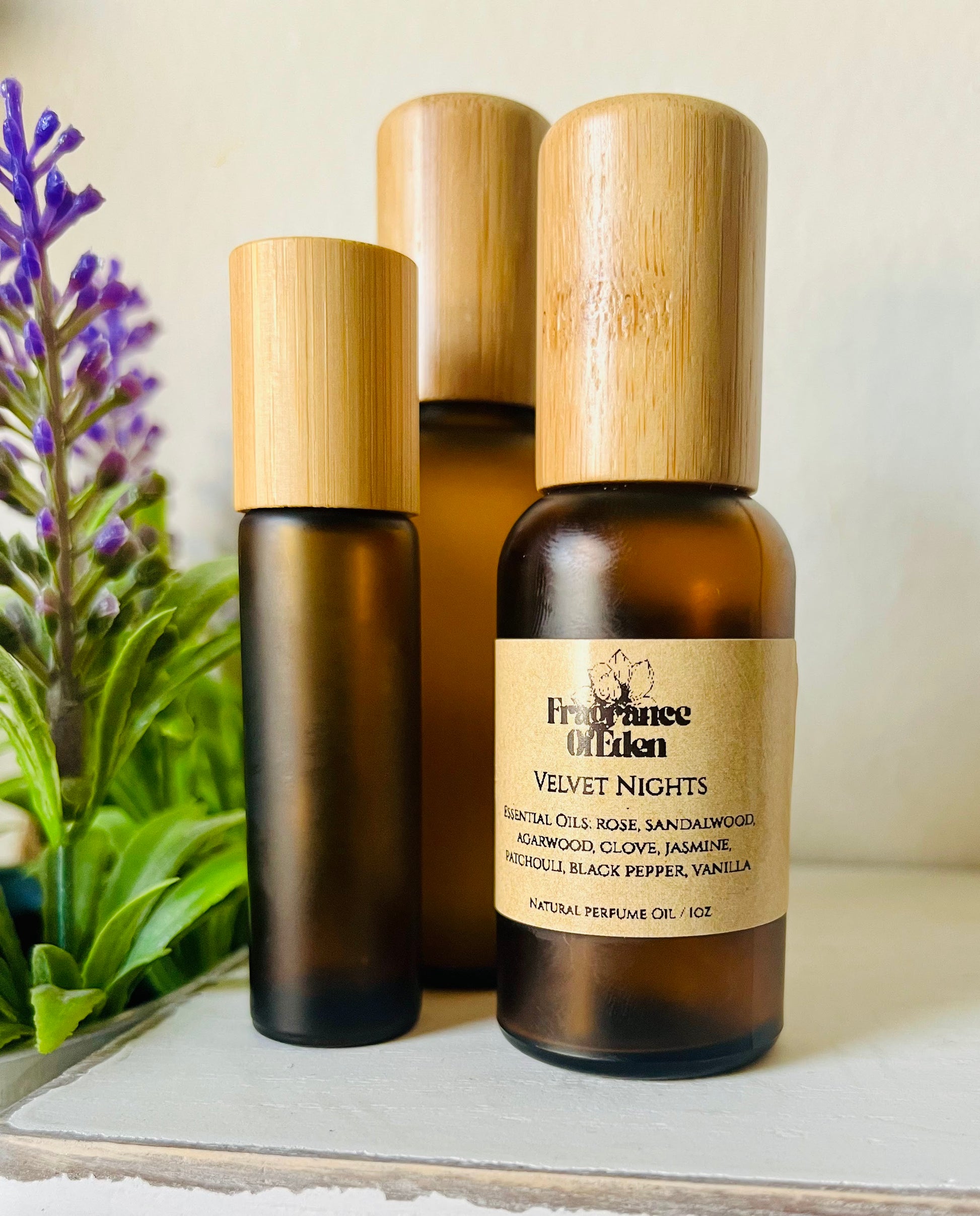 Indulge in the enchanting allure of Velvet Nights, a rich, sensual perfume oil crafted for the person who exudes confidence and mystery. This captivating blend of luxurious florals, warm spices, and earthy woods wraps you in a velvety embrace, creating a deeply romantic and sophisticated fragrance for evening wear. Each ingredient has been thoughtfully selected to create an intoxicating aroma that delights the senses while offering numerous health benefits.
